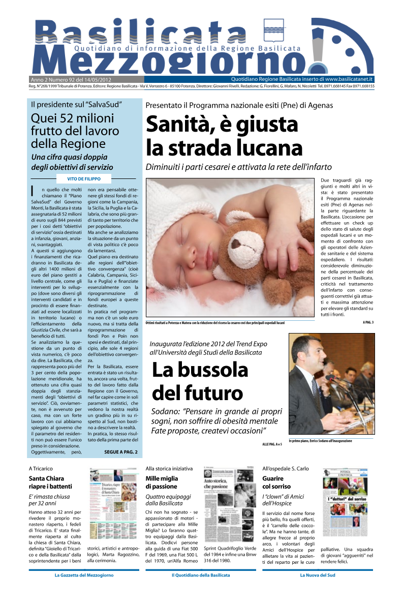 Maggio 14, 2012 On line Basilicata MezzogiornoIn primo piano nell’edizione odierna di Basilicata Mezzogiorno l’analisi del presidente De Filippo sulle opportunità del Piano Salva-Sud...