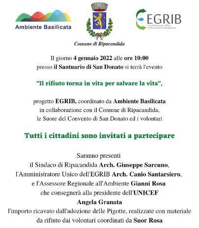 Gennaio 3, 2022 Il rifiuto torna in vita per salvare la vita, evento a Ripacandida“Il rifiuto torna in vita per salvare la vita” è il titolo dell’evento che avrà luogo domani, martedì...