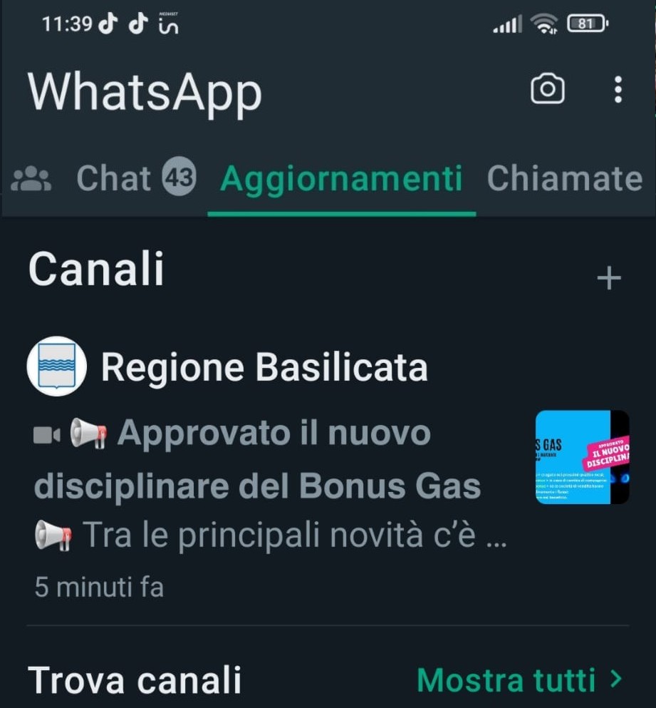 Ottobre 24, 2023 La Regione Basilicata ha il suo canale ufficiale su WhatsAppCon la diffusione delle FAQ sul nuovo disciplinare del bonus gas parte oggi il Canale WhatsApp della Regione...