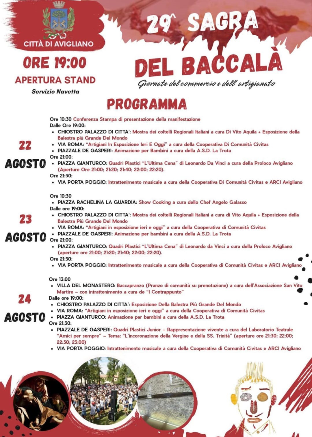 Agosto 21, 2025 Avigliano, dal 22 al 24/08 sagra del baccalàNumerose le novità dell'edizione che vede coinvolte varie associazioni, operatori del settore, artigiani e artisti del territorio: il...