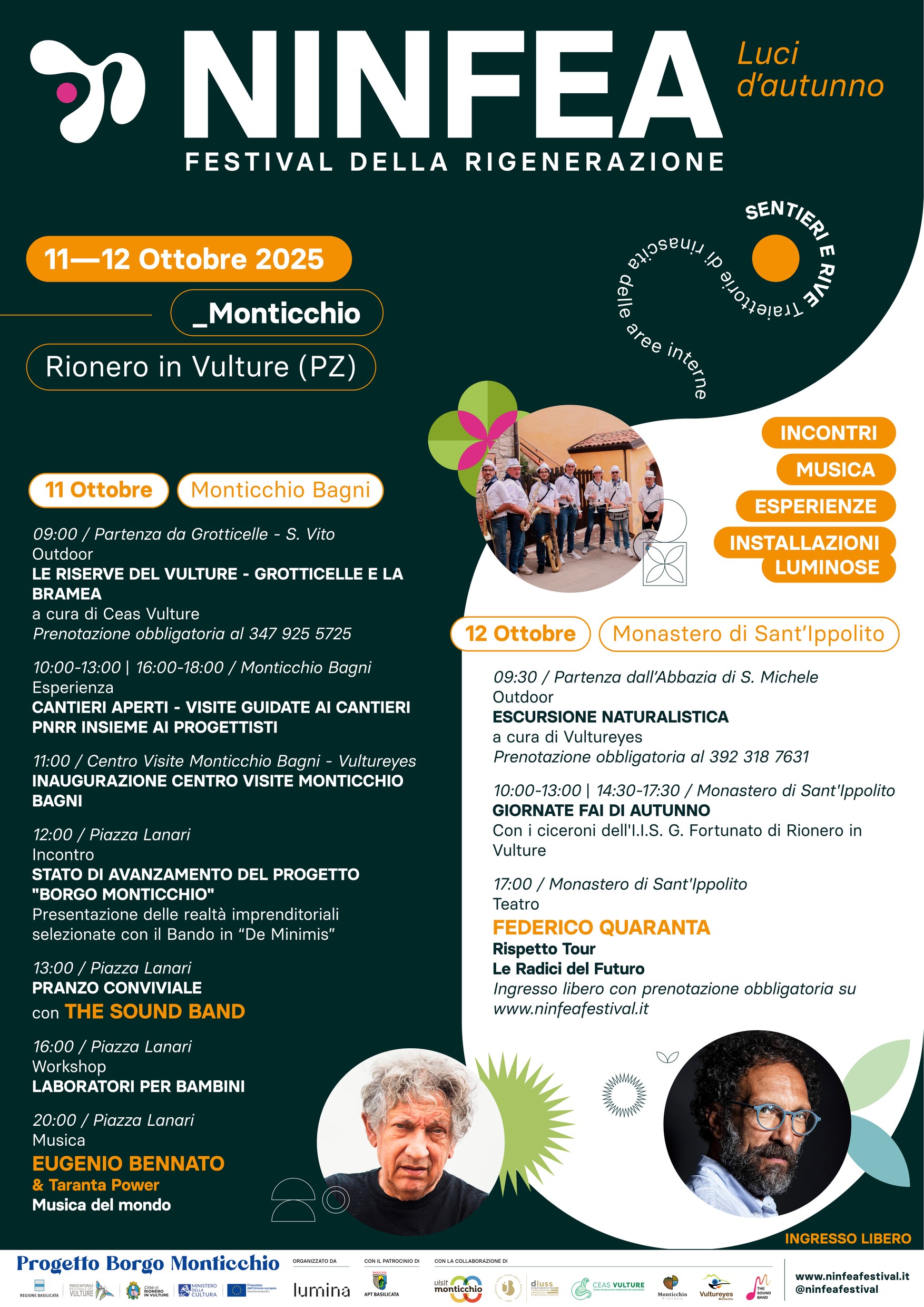 Ottobre 6, 2025 “Ninfea Festival – Luci d’Autunno” a MonticchioL’11 e il 12 ottobre il borgo di Monticchio Bagni e il Monastero di Sant’Ippolito sul Lago Piccolo...