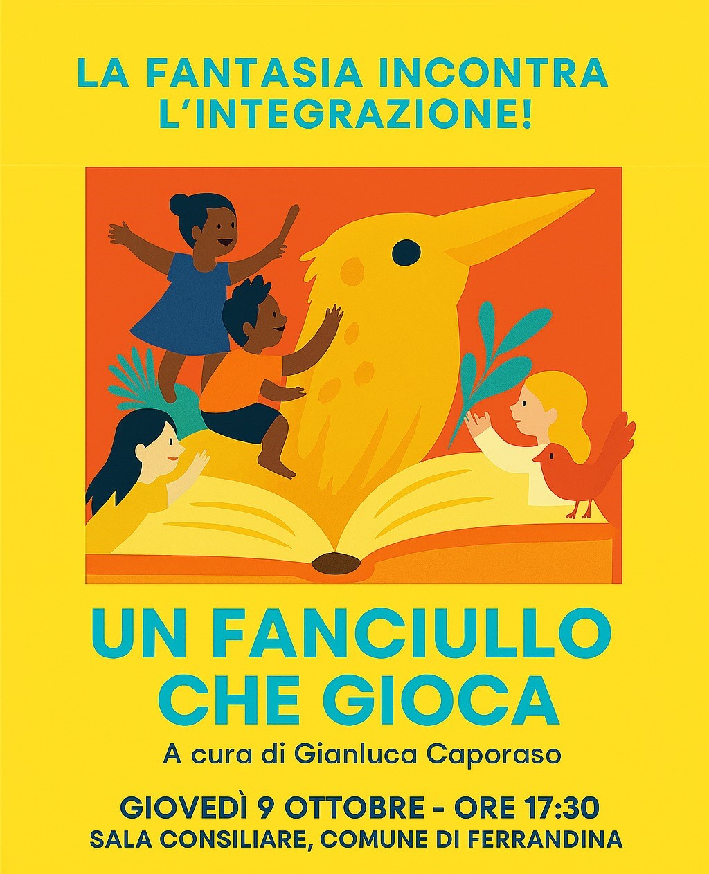 Ottobre 6, 2025 Presentazione libretto “Un fanciullo che gioca”Sarà presentato giovedì 9 ottobre, alle ore 17.30, nella Sala Consiliare del Comune di Ferrandina, il libro "Un...