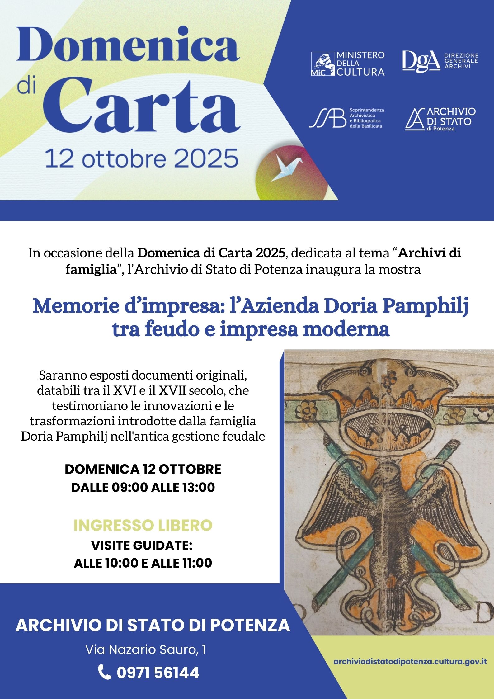 Ottobre 9, 2025 Ottobre 9, 2025“Domenica di Carta” all’Archivio di Stato Potenza