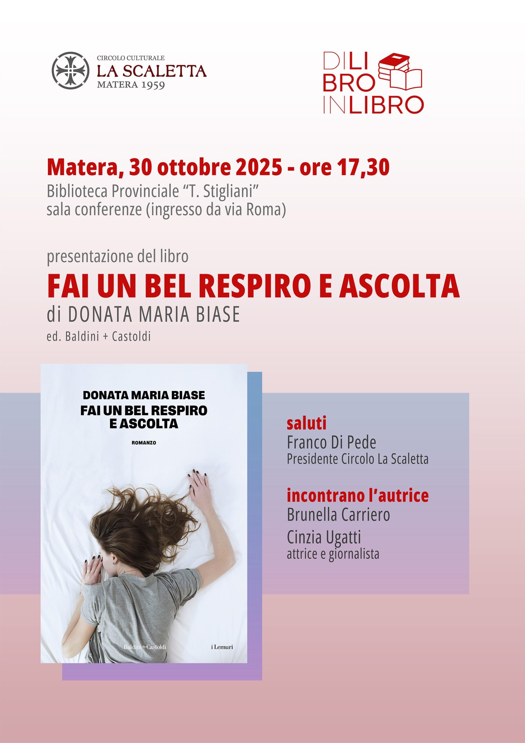 Ottobre 28, 2025 A Matera si presenta “Fai un bel respiro e ascolta”Si terrà giovedì 30 ottobre alle 17.30 nella Sala Battista della Biblioteca Provinciale di Matera, la presentazione del...