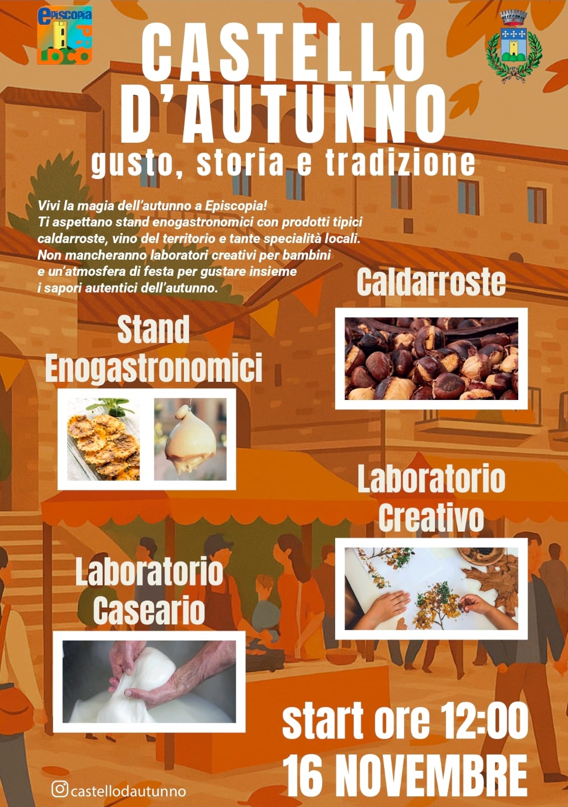 Novembre 10, 2025 “Castello d’Autunno – gusto, storia e tradizione”Tra profumi di castagne, sapori autentici e la magia dei colori autunnali, Episcopia si prepara ad accogliere “Castello...