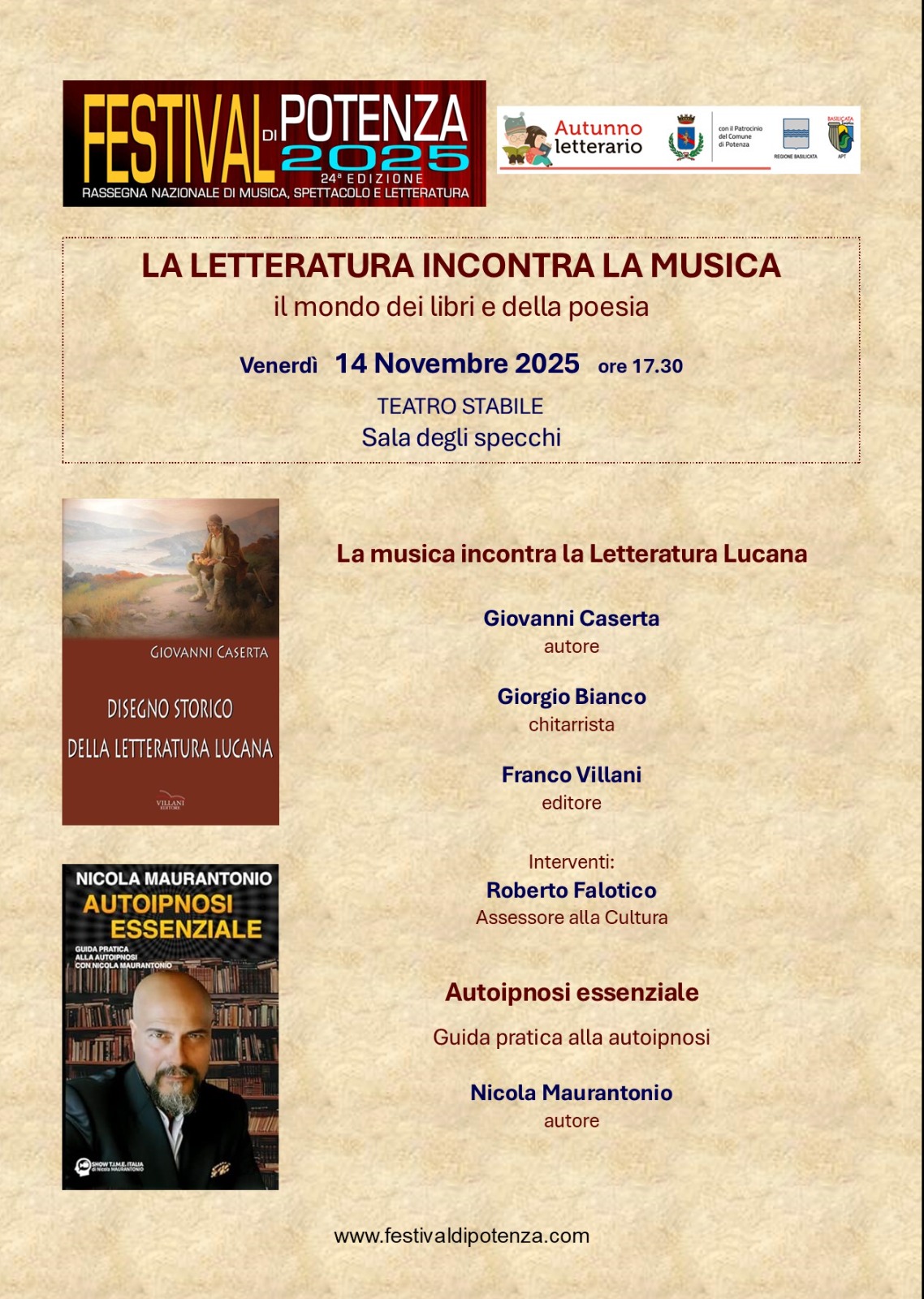Novembre 12, 2025 A Potenza l’ultimo libro di Giovanni CasertaVenerdì 14 novembre 2025, alle ore 17,30 nel Salone degli Specchi del Teatro Stabile di Potenza, nel quadro...
