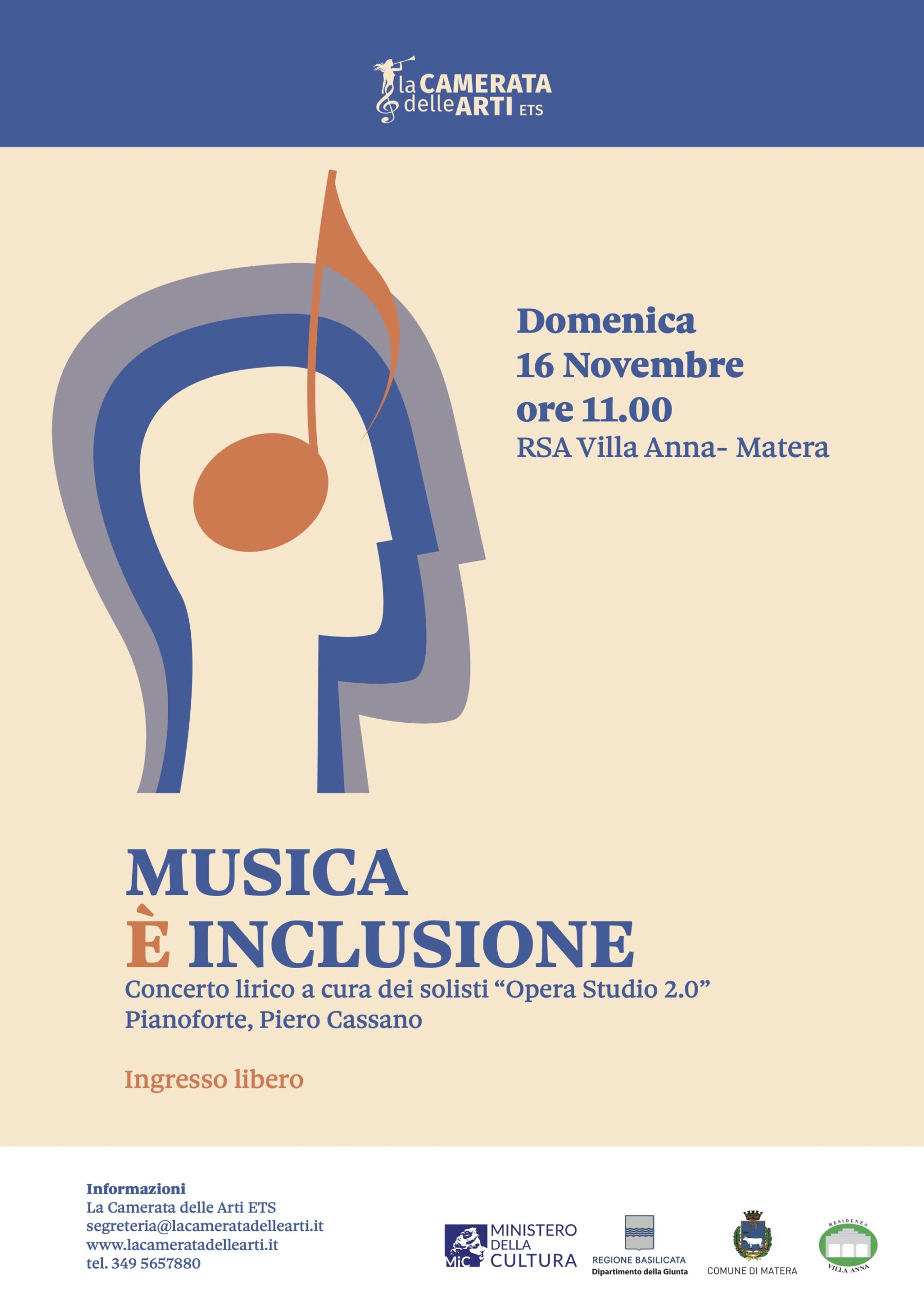 Novembre 14, 2025 “Musica è Inclusione”, concerto a MateraProsegue a Matera la rassegna “Musica è Inclusione”, progetto promosso dalla Camerata delle Arti che unisce musica, solidarietà...