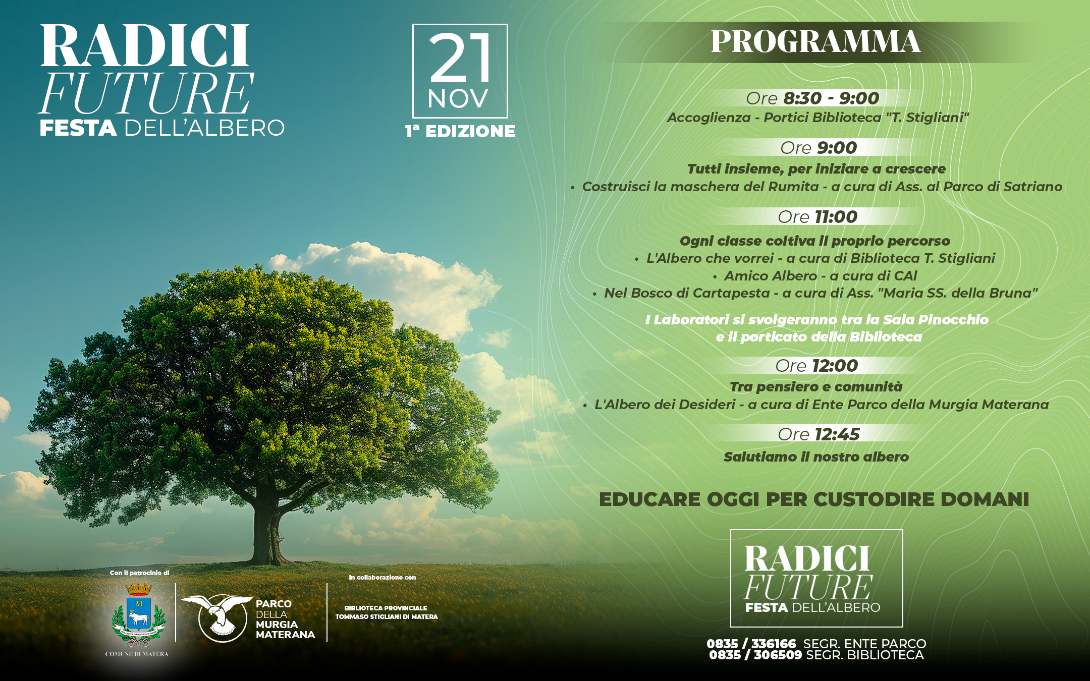 Novembre 19, 2025 La Murgia Materana celebra la Festa dell’AlberoUn’occasione per riscoprire il legame con la natura, condividere buone pratiche e riconoscere negli alberi un simbolo di...
