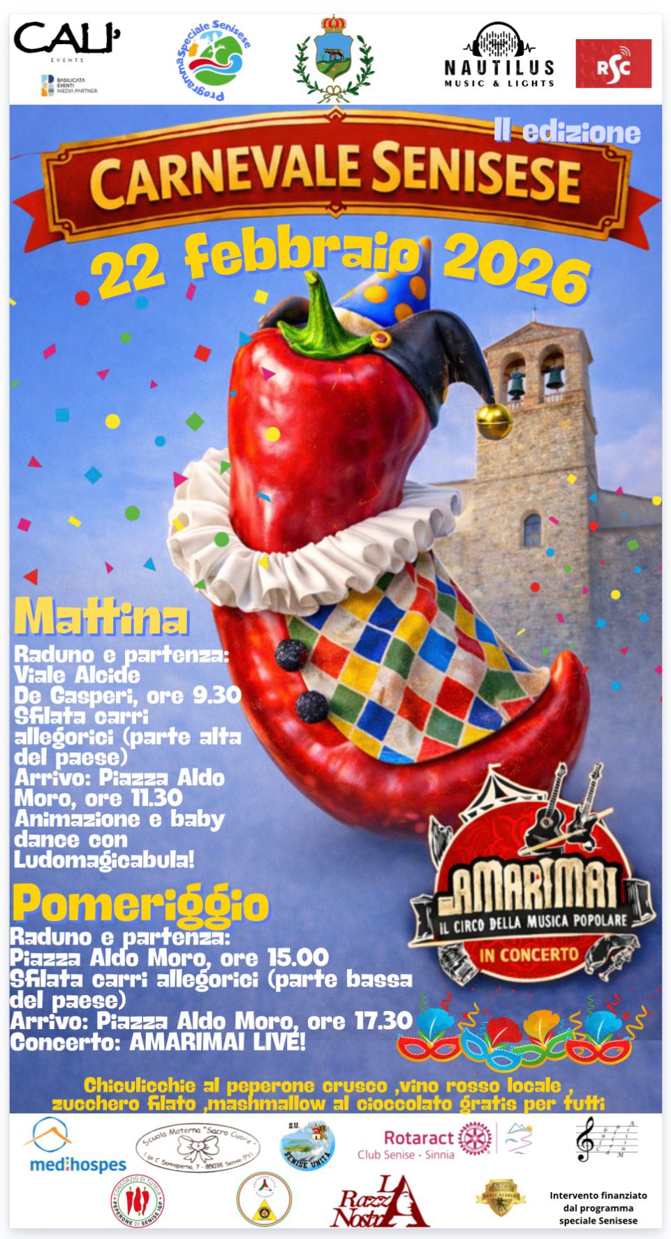 Febbraio 16, 2026 Carnevale senisese 2026Dopo il grande riscontro ottenuto nella scorsa edizione, Senise si prepara a vivere la seconda edizione del Carnevale...