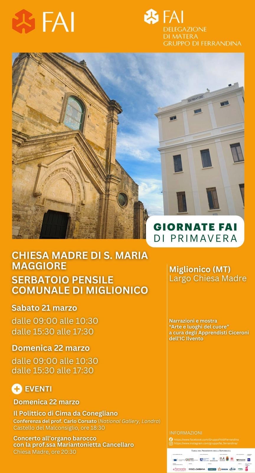 Marzo 16, 2026 Il 22 e 23 marzo le Giornate Fai a MiglionicoIn occasione delle Giornate FAI di Primavera, il borgo di Miglionico apre al pubblico due luoghi di particolare...