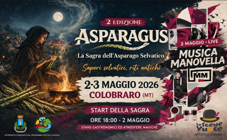 Aprile 28, 2026 Il 2 e 3 maggio a Colobraro torna ”Asparagus”Tutto pronto a Colobraro per la seconda edizione di “Asparagus - sagra dell'asparago selvatico di Colobraro”, la festa ...