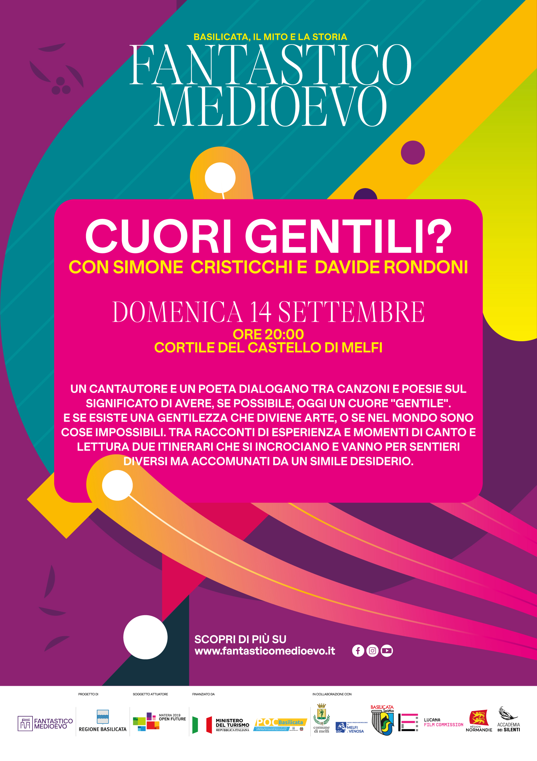 Settembre 11, 2025 A Melfi Simone Cristicchi e Davide RondoniDomenica 14 settembre nel cortile del Castello di Melfi alle ore 20.00 andrà in scena lo spettacolo “Cuori...