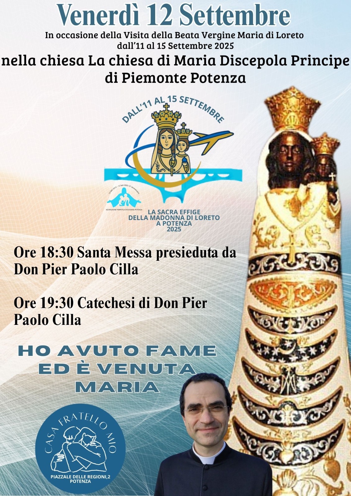 Settembre 9, 2025 Potenza accoglie la Madonna di LoretoDal giorno 11 al 15 settembre 2025 la città di Potenza accoglierà la Sacra Effigie della Madonna di...