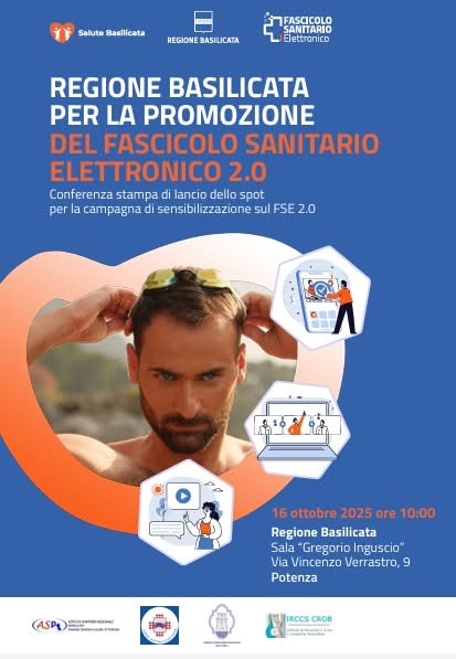 Giovedì 16 ottobre, dalle 9.30, nella Sala Inguscio della Regione, conferenza stampa per il lancio in anteprima dello spot di promozione del Fascicolo sanitario elettronico regionale 2.0. All’incontro sarà presente il testimonial, il campione di nuoto Domenico Acerenza.