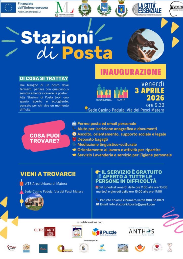 Si terrà venerdì 3 aprile alle ore 9.30, nella sede di Casino Padula, in via dei Pesci, a Matera, l’inaugurazione del servizio “Stazioni di Posta”.