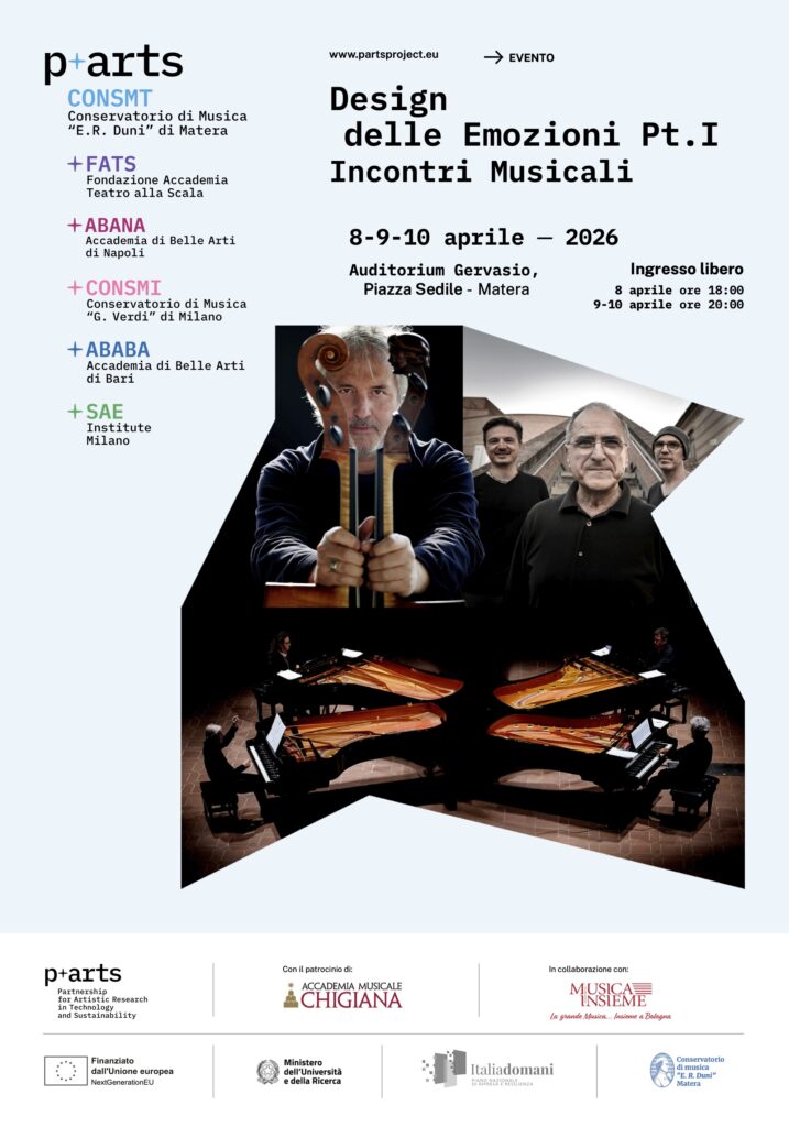 Il progetto P+ARTS – che coinvolge Conservatorio di Matera, Fondazione Accademia Teatro alla Scala, Accademia delle Belle Arti di Napoli, Conservatorio di Milano, Accademia delle Belle Arti di Bari, SAE Institute Milano – si inserisce in una visione strategica più ampia, che riconosce nella collaborazione tra istituzioni, nella contaminazione dei linguaggi e nell’innovazione tecnologica elementi fondamentali per lo sviluppo della formazione artistica contemporanea.