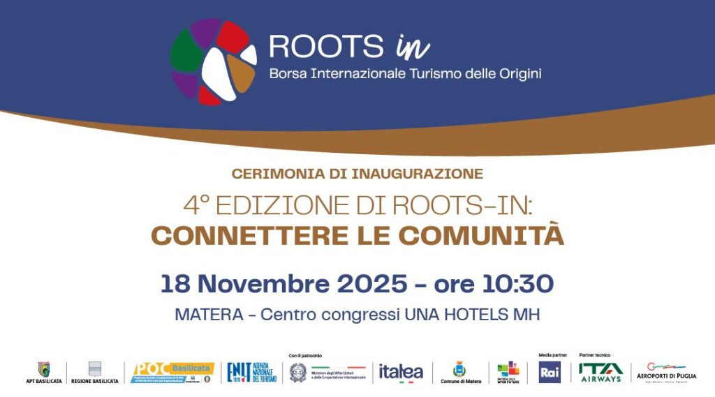 Sarà Matera ad ospitare il 18 e 19 novembre 2025 la Quarta Edizione della “Borsa Roots-IN – Roots Tourism International Exchange”. L’iniziativa è promossa dalla Regione Basilicata, attraverso l’Agenzia di Promozione Territoriale (Apt), in collaborazione con Enit – Agenzia nazionale del Turismo e con il supporto del ministero degli Affari Esteri e della Cooperazione Internazionale.
