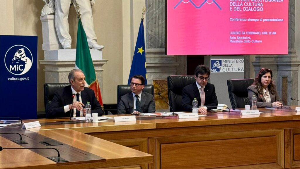 Si è svolta questa mattina nella Sala Spadolini del Ministero della Cultura la presentazione del programma di Matera Capitale Mediterranea della Cultura e del Dialogo 2026. Alla presenza del Presidente della Regione Basilicata, Vito Bardi; del Sindaco di Matera, Antonio Nicoletti; del Consigliere Diplomatico del Ministro Giuli, Clemente Contestabile; e della Direttrice Generale della Fondazione Matera Basilicata 2019, Rita Orlando; è stata tracciata la rotta di “Terre Immerse”: una visione che trasforma il Mezzogiorno da periferia a piattaforma strategica di diplomazia culturale.