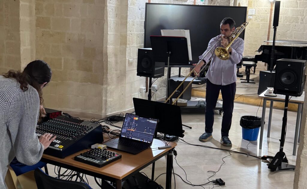 Al centro della masterclass, il rapporto tra trombone ed elettronica, affrontato come spazio di sperimentazione sonora, ricerca timbrica, semiografia contemporanea e pratica performativa. Un’impostazione che valorizza in modo diretto il lavoro della Scuola di Musica Elettronica del Conservatorio di Matera, sempre più impegnata nello sviluppo di percorsi dedicati alle tecnologie applicate alla musica mista e alla produzione contemporanea. In questa direzione, la masterclass ha evidenziato come il live electronics sia ormai diventato una componente centrale dei linguaggi musicali contemporanei, capace di mettere in relazione strumentisti, compositori e interpreti all’interno di un processo creativo condiviso.