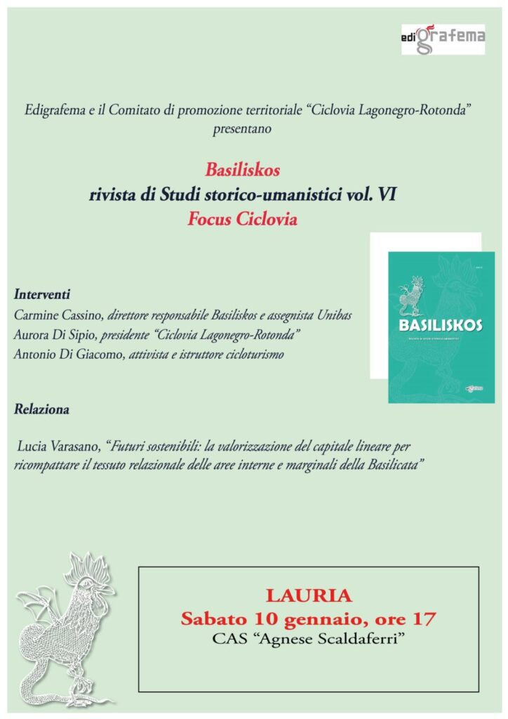L’iniziativa editoriale verrà presentata a Lauria sabato 10 gennaio, alle ore 17.00, nella sede del CAS “Agnese Scaldaferri”, in via Carroso-Parco del Vincolato.