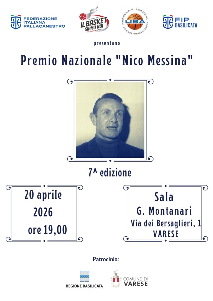 La VII edizione del premio nazionale “Nico Messina”, promossa dalla Federazione Italiana Pallacanestro – Comitato Regionale Basilicata, si svolgerà a Varese lunedì 20 aprile 2026.