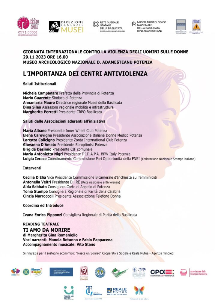 Si svolgerà domani, 29 novembre, alle 16 presso il Museo Archeologico Nazionale di Potenza una tavola rotonda sul tema “L'importanza dei centri antiviolenza".