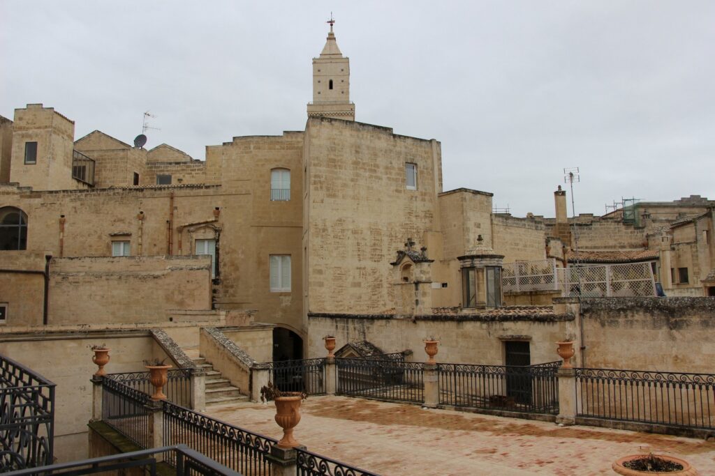 La Chiesa di San Pietro e Paolo, da tutti conosciuta come San Pietro Caveoso, sorge nella piazza omonima. La denominazione è motivata dalla necessità di distinguere questo luogo da San Pietro Barisano, il più grande sito religioso rupestre che si trova nell’altro Sasso. San Pietro Caveoso ha rappresentato uno dei principali riferimenti per i cattolici materani, sia per la notevole estensione della parrocchia che si allungava dai margini della Gravina fino al sovrastante piano, sia per la ricchezza dei suoi beni. Oltre ad alcune tracce di affreschi rupestri, vi si ammirano dipinti di varie epoche, tra cui una “Pietà” di Alessandro Fracanzano, pittore del ‘600, e due gruppi di affreschi attribuiti a Martino Deghello, a lungo celati da stucchi del XVIII secolo. Nella cappella di Sant’Antonio si trova anche un bassorilievo attribuito ad Altobello Persio. La visita consentirà agli studenti di apprezzare la dotazione artistica di questa chiesa, il cui impianto è fortemente asimmetrico in quanto le quattro cappelle a destra sono state abbattute nel secondo dopoguerra per costruire l’oratorio e l’arco di accesso carrabile verso rione Malve. Nelle Giornate FAI per le scuole sarà possibile visitare anche il salone dell’oratorio, da cui si godono suggestivi affacci sulla Murgia. Piazza, chiesa e oratorio sono stati inoltre set per vari film ambientati in città, come La lupa di Alberto Lattuada, Il sole anche di notte dei fratelli Taviani e L’albero di Guernica di Fernando Arrabal. Visite a cura degli Apprendisti Ciceroni del Liceo T. Stigliani di Matera (Liceo Economico Sociale).