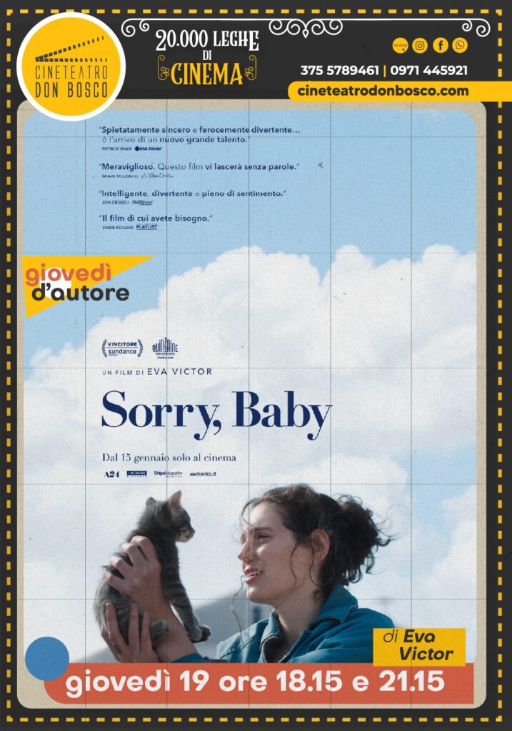 Con una regia delicata e capace di alternare profondità e ironia, Sorry Baby racconta la complessità della ricostruzione di sé, mettendo al centro l’importanza dell’ascolto, della solidarietà e della possibilità di tornare a vivere. Il film verrà proiettato in prima visione per la città di Potenza, giovedì 19 con spettacoli alle 18:15 e alle 21:15.