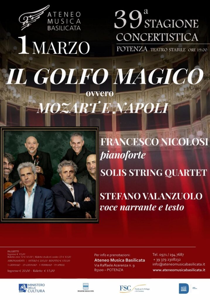 Nell’ambito della stagione concertistica di Ateneo Musica Basilicata domenica 1° marzo, alle 19, a Potenza nel Teatro Stabile andrà in scena lo spettacolo “Il Golfo magico, ovvero Mozart e Napoli”.