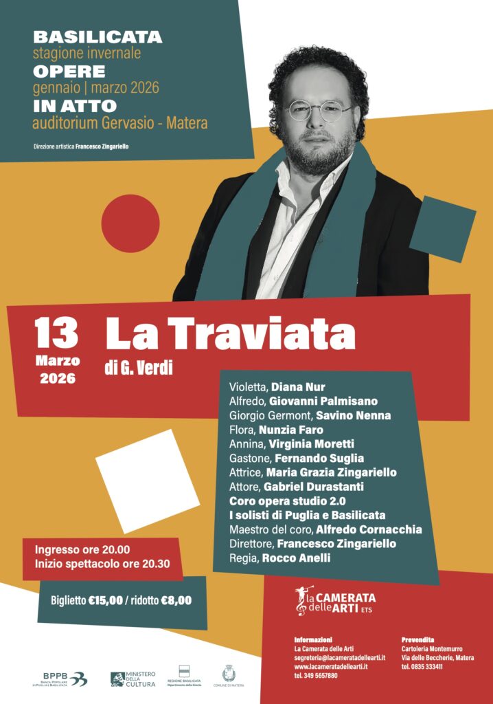 «Abbiamo immaginato Basilicata Opere in Atto come un percorso, non come una semplice successione di eventi» – dichiara il direttore artistico Francesco Zingariello – «Un cammino che ha messo in relazione pubblici diversi, linguaggi differenti e sensibilità complementari. Chiudere con La Traviata significa tornare al cuore del teatro musicale, ma anche ribadire che la cultura cresce solo se diventa esperienza condivisa. La risposta del pubblico, in questi mesi, ci conferma che Matera è pronta a vivere stagioni sempre più ambiziose, nel segno della qualità, dell’inclusione e della partecipazione, in linea con gli auspici e gli obiettivi di Matera Capitale del Mediterraneo per la Cultura e per il Dialogo che si apre tra pochi giorni».