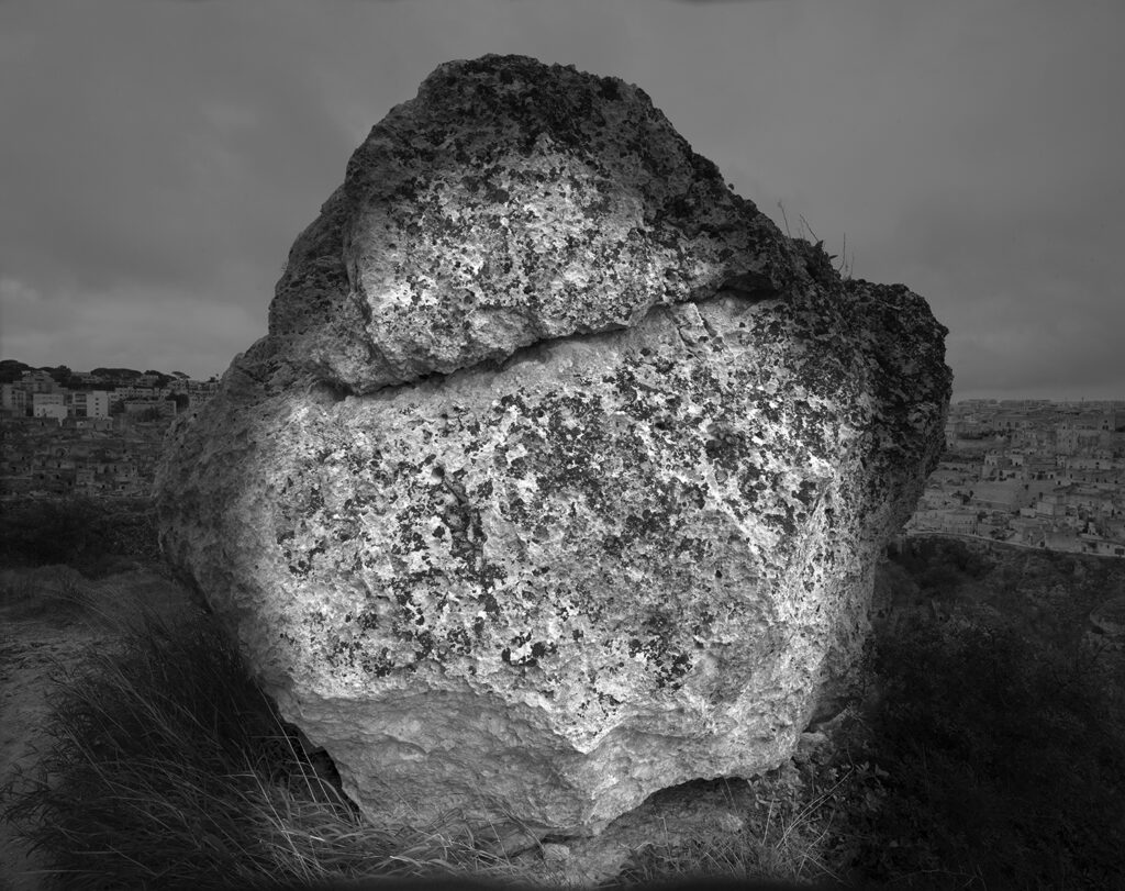 Con le sue 50 fotografie in bianco e nero, Luigi Spina esplora il senso identitario degli oggetti: il nucleo centrale è dedicato ai marchi del pane, i timbri in legno che per secoli hanno siglato l’appartenenza delle pagnotte alle diverse famiglie materane. Nelle immagini di Spina, le forme del pane e dei manufatti dialogano per assonanza con il paesaggio di Matera: un gioco di superfici, toni e volumi dove il cibo e la terra si specchiano l’uno nell’altra.