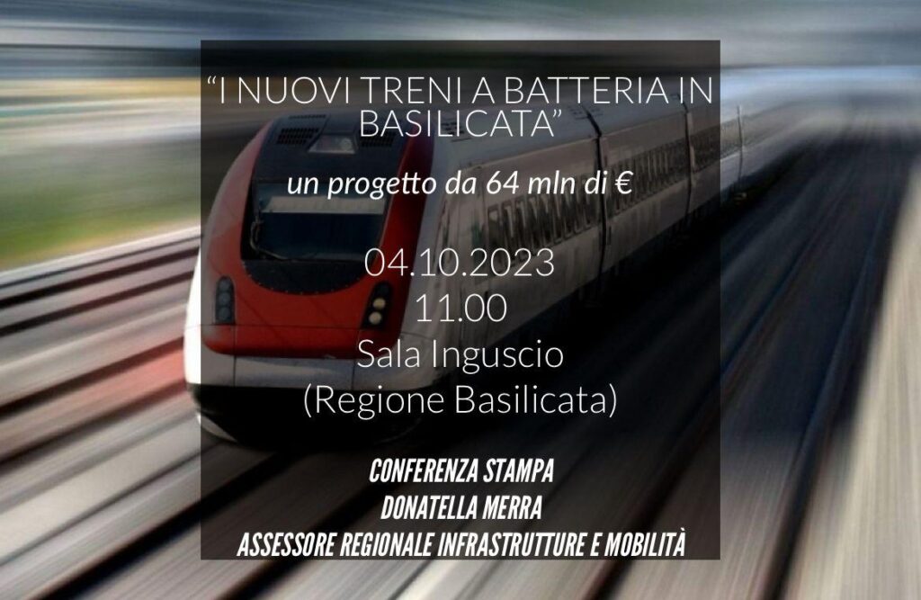 Modello ferroviario Basilicata: la sfida di Matera, con il progetto “Nuovo Treno a Batteria” e gli investimenti su Potenza saranno oggetto della conferenza stampa che si terrà domani, mercoledì 4 ottobre, a Potenza, alle 11 nella Sala Inguscio della Regione Basilicata.
