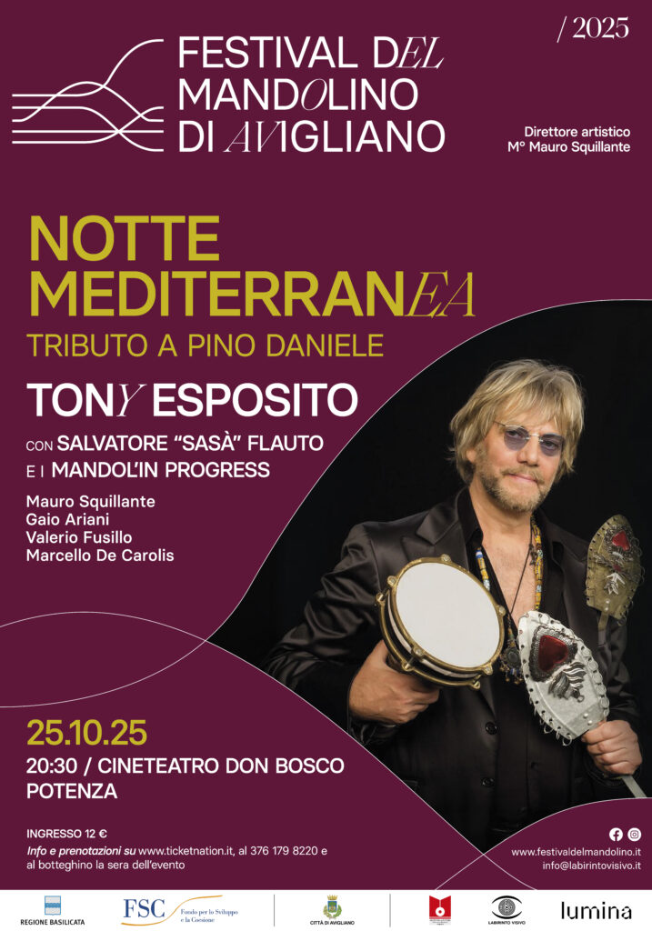Appuntamento imperdibile sabato 25 ottobre alle ore 20:30 al Cineteatro Don Bosco di Potenza, con un omaggio in musica al grande Pino Daniele a dieci anni dalla sua scomparsa. Sul palco potentino, infatti, saliranno i Mandol’in Progress per il concerto “Notte Mediterranea”.