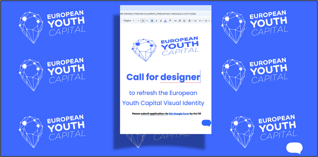 Il Forum europeo della gioventù ha lanciato un invito per rinnovare l’identità visiva della Capitale europea dei giovani. Il Forum cerca giovani designer di talento o collettivi creativi provenienti da tutta l’UE per progettare una identità visiva fresca, d’impatto e pertinente che valorizzi il titolo, garantendo al contempo la coerenza con lo stile visivo generale del Forum europeo della gioventù.