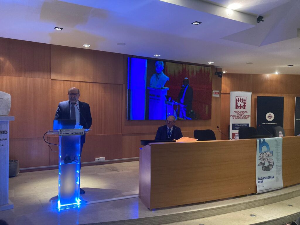“La talassemia è una patologia rara ma ad alta complessità assistenziale, che interpella non solo la medicina, ma anche la capacità delle istituzioni di garantire percorsi di cura equi, sostenibili e profondamente umani”. Con queste parole l’assessore regionale alla Salute, Politiche per la Persona e PNRR, Cosimo Latronico, è intervenuto questa mattina all’Auditorium dell’Ospedale “Madonna delle Grazie” di Matera, in occasione del convegno “Talassemia 2025”, che ha visto la partecipazione di esperti di rilievo nazionale, rappresentanti delle associazioni di volontariato e dei pazienti.