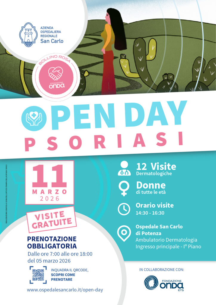 L’Azienda Ospedaliera Regionale San Carlo rinnova il proprio impegno sul fronte della prevenzione aderendo all’(H)open day dedicato alla psoriasi, promosso dalla Fondazione Onda ETS. L’appuntamento è fissato per mercoledì 11 marzo 2026, dalle ore 14:30 alle ore 16:30, nell’ambulatorio di Dermatologia, ingresso principale, 1° piano, dell’ospedale San Carlo di Potenza, dove gli specialisti della Dermatologia offriranno 12 visite gratuite dedicate alle donne di tutte le età.