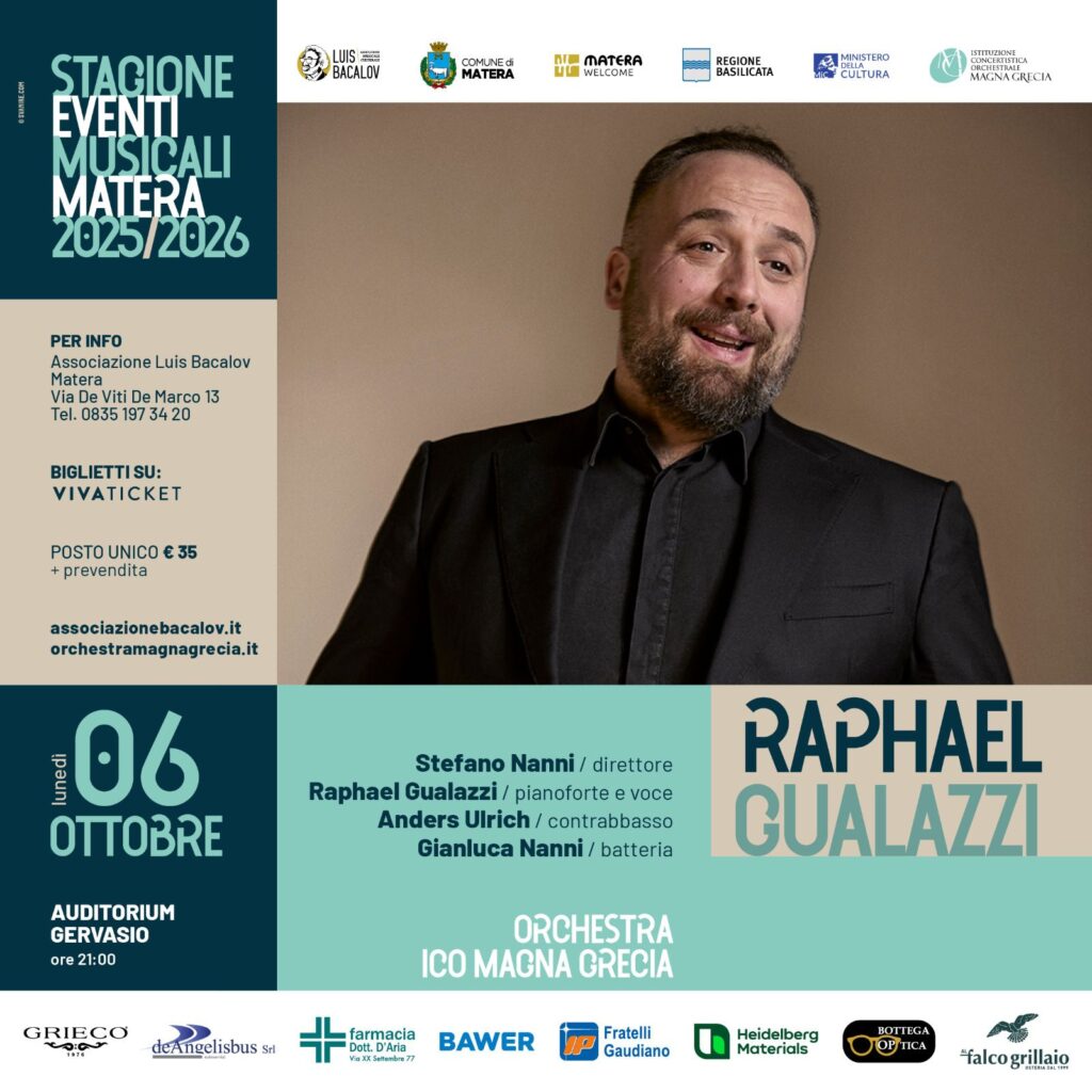 Sarà Raphael Gualazzi, raffinato cantautore e pianista jazz dalla cifra stilistica inconfondibile, ad aprire la nuova Stagione Eventi Musicali di Matera 2025/2026, promossa dall’Associazione Luis Bacalov in collaborazione con l’Orchestra ICO Magna Grecia.