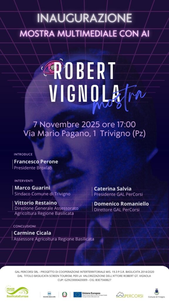 Trivigno celebra uno dei suoi figli più illustri. Il 7 novembre 2025, alle 17:00, verrà inaugurata in Via Mario Pagano 1 la mostra multimediale “Robert G. Vignola –