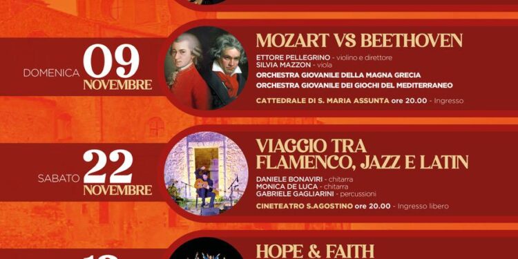 Cinque appuntamenti, tutti a ingresso libero, animeranno la città tra ottobre e dicembre, portando sul palco artisti di rilievo nazionale e internazionale e progetti capaci di coniugare linguaggi diversi: dalla musica classica al jazz, dal gospel alle contaminazioni contemporanee.