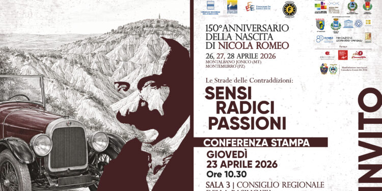 Il 23 aprile a Potenza la conferenza stampa di presentazione del progetto dedicato ai 150 anni della nascita di Nicola Romeo. L’incontro rappresenta il momento ufficiale di avvio di un articolato percorso culturale che, dal 26 al 28 aprile, animerà Montalbano Jonico e Montemurro