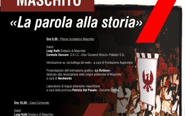 A Maschito domani il prossimo appuntamento per il progetto “Arbëresh Mediterraneo”, finanziato dai Piani Integrati della Cultura della Regione Basilicata e promosso da una partnership di Comuni guidata da San Paolo Albanese, e che include Ginestra, Maschito e San Costantino Albanese.