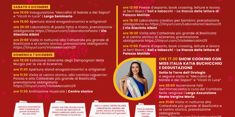 Il 6 e 7 dicembre si accende di magia il borgo, annoverato tra i Borghi più Belli d’Italia, con l’iniziativa che trasforma il centro storico in un villaggio natalizio fatto di suoni, luci e sapori autentici della Basilicata. L’evento si arricchisce quest’anno di nuove proposte.