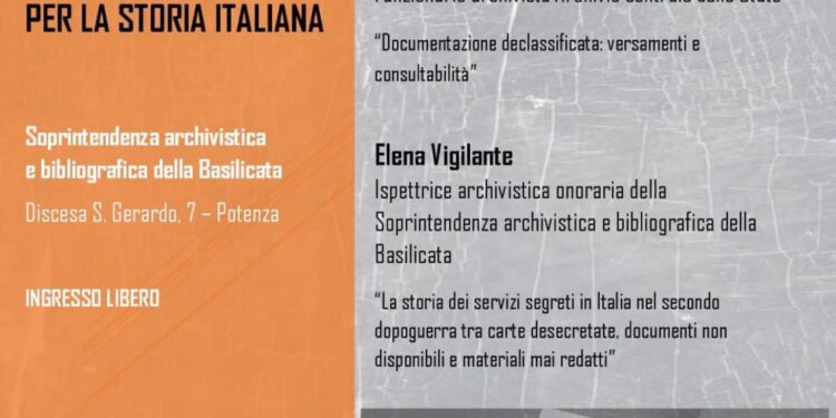 Domani, mercoledì 3 dicembre, alle ore 16.30, presso la Soprintendenza archivistica e bibliografica della Basilicata si terrà un incontro dedicato alla recente documentazione declassificata e alle nuove possibilità di ricerca storica.
