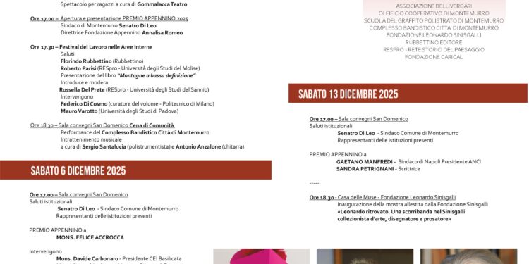 Prende il via a Montemurro la quarta edizione del PREMIO APPENNINO 2030FEST, ideato e realizzato da Fondazione Appennino Ets in collaborazione con l’Amministrazione Comunale. Tre giorni di incontri ed eventi on al centro l’economia, il territorio, la cultura, l’arte.