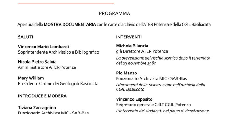 La Soprintendenza Archivistica e Bibliografica della Basilicata commemora la tragedia del terremoto che colpì duramente la Campania e la Basilicata con un incontro e una mostra documentaria sul tema della ricostruzione. L’appuntamento è per domenica 23 novembre alle 10.
