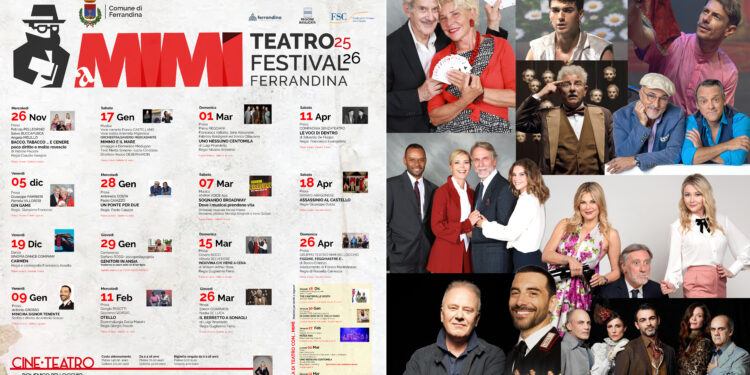 La magia del teatro torna a illuminare Ferrandina con la nuova stagione del Teatro Festival “A Mimì” 2025/26, dedicata al poeta e drammaturgo Bellocchio. Un cartellone ricco e di altissimo livello accompagnerà il pubblico da novembre ad aprile, con 15 appuntamenti.