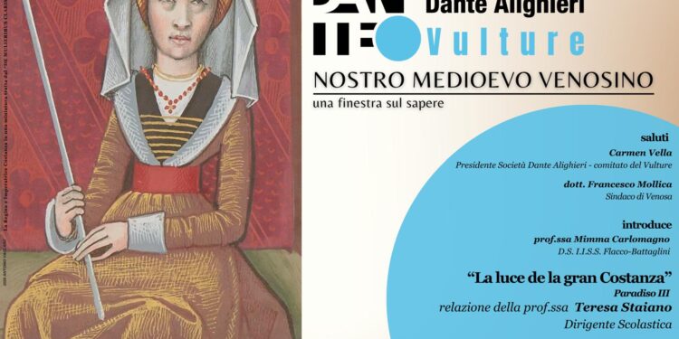 L’appuntamento, ispirato al III Canto del Paradiso, è dedicato alla riscoperta della madre di Federico II, L’obiettivo è trascendere l’esegesi dantesca per mettere in risalto la statura storica di una sovrana che seppe guidare il Regno di Sicilia fino all’alba dell’epoca sveva.