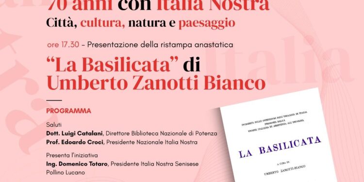 In programma venerdì 24 aprile (ore 17) nel Polo Bibiotecario di Potenza l’inaugurazione della mostra dedicata ai 70 anni di Italia Nostra e la presentazione della ristampa del celebre volume “La Basilicata”, uno spaccato della regione negli anni 50 del secolo scorso.