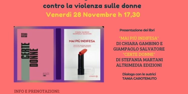 Mai più indifesa di Chiara Gambino e Giampaolo Salvatore e Certe donne di Stefania Martani. Le due pubblicazioni verranno presentate venerdì 28 novembre alle ore 17:30 a Roma, presso Sincronie – Studio di Terapie Integrate dove avrà luogo un incontro sul tema.